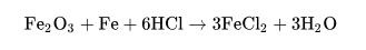 鹽酸一個(gè)最重要的用途是酸洗鋼材。在后續(xù)處理鐵或鋼材(擠壓、軋制、鍍鋅等)之前,可用鹽酸反應(yīng)掉表面的銹或鐵氧化物。通常使用濃度為18%的鹽酸溶液作為酸洗劑來(lái)清洗碳鋼: