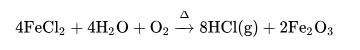 酸洗鋼材工業(yè)發(fā)展了鹽酸再生工藝,如噴霧焙燒爐或流化床鹽酸再生工藝等。這些工藝能讓氯化氫氣體從酸洗液中再生。其中最常見(jiàn)的是高溫水解工藝,其反應(yīng)方程式如下: