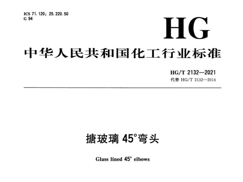 中華人民共和國(guó)化工行業(yè)標(biāo)準(zhǔn)HG/T 2132-2021搪玻璃45°彎頭 點(diǎn)擊下載搪玻璃45°彎頭行業(yè)標(biāo)準(zhǔn)