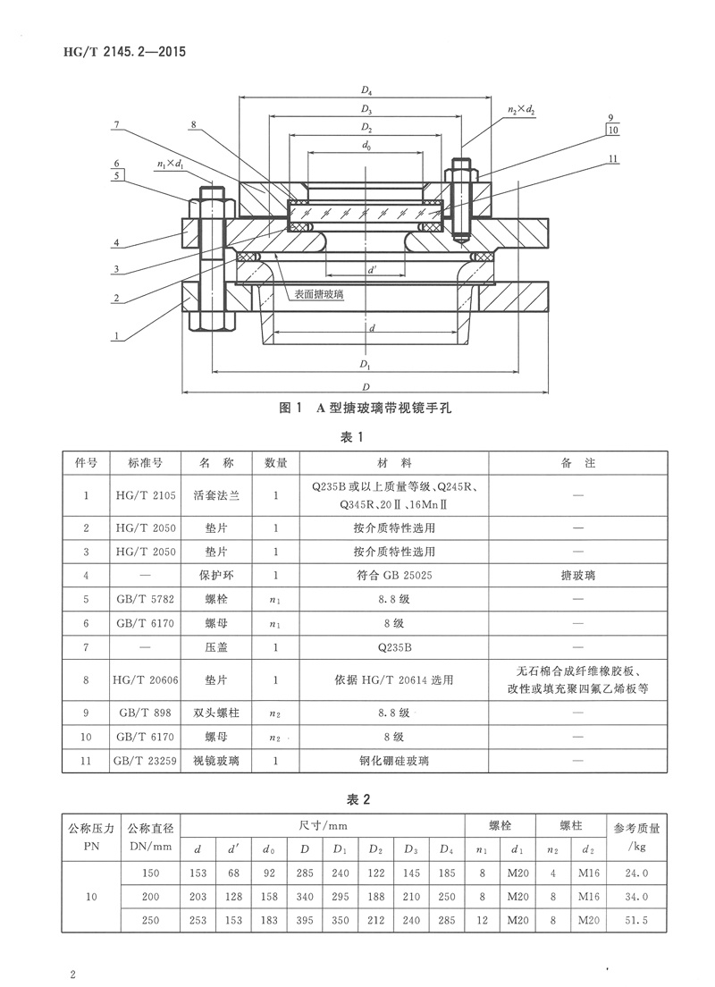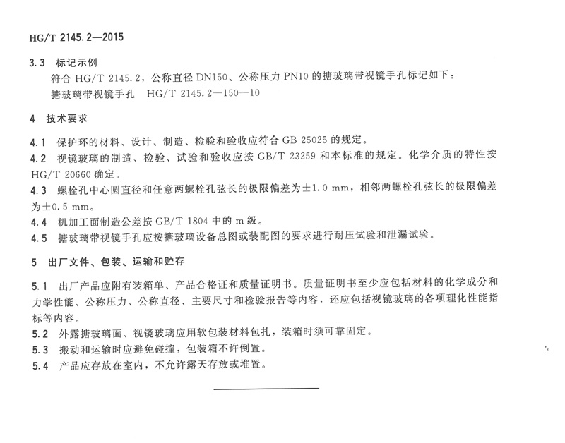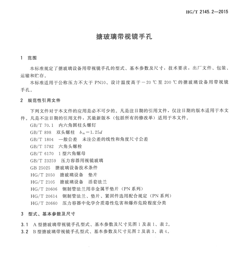 HG/T 2145.2-2015搪玻璃帶視鏡手孔化工行業(yè)標準簡介和下載