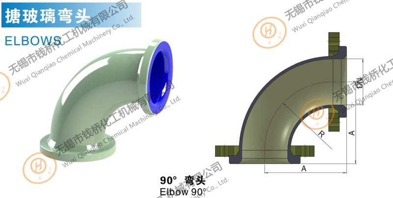 錢橋化工機(jī)械生產(chǎn)的搪玻璃90°彎頭優(yōu)勢: