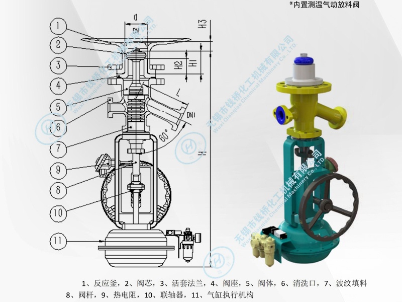 閥門采用無間隙結(jié)構(gòu),波紋填料密封和閥芯緊密裝配,減少泄露的可能。閥芯內(nèi)可以安裝溫度傳感器,檢測物料溫度。該閥門通過氣缸控制自動化程度高,可以遠(yuǎn)距離操作,安全可靠,抗腐蝕能力強(qiáng),在氣動控失效的時(shí)可通過手動操作開關(guān)閥門。